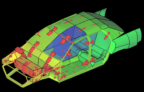 | A popular software package for doing this is ANSYS. ANSYS is a collection of a broad array of equations, a subset of which can be used to approach acoustic modeling. Most obviously, speaker design is one of the primary markets for this. It can also be used in more engineering-specific needs, such as the aerospace or automotive industry, where noise vibration will lead to part wear - costs for the warranty holder on the short term, or the car owner on the long term. Acoustic FE is often referred to as Boundary Element Analysis (BEA). A few companies have begun to curtail these techniques toward modeling and visualizing sound radiating from an object. | |